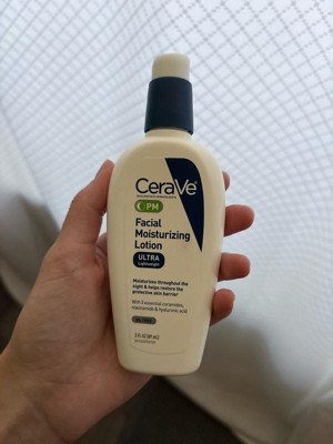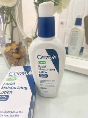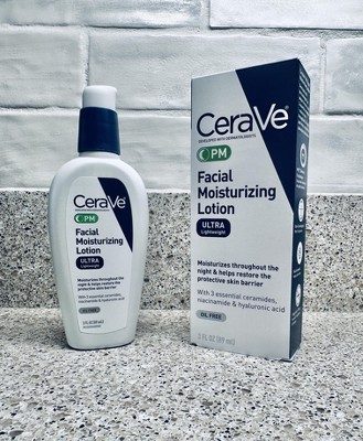 Developed with dermatologists, CeraVe PM Lightweight Facial Moisturizing Lotion for Nighttime use has an ultra-lightweight, unique formula that moisturizes throughout the night and helps restore the protective skin barrier with three essential ceramides (1,3,6-II). The formula also contains hyaluronic acid to help retain skin's natural moisture and niacinamide to help calm skin CeraVe PM Ultra-Lightweight Facial Moisturizing Lotion is oil-free, non-comedogenic and fragrance-free. How to Use: Apply night cream liberally to face and neck at night, or as directed by a physician.