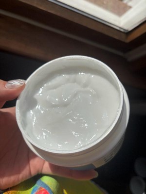 It has a rich, thick texture that feels substantial without being "waxy". It's smooth and easy to spread across the skin. It glides on effortlessly. For best results, it should be applied to slightly damp skin to "lock in" moisture. The 12 oz (340 g) jar is sturdy and allows you to use every last bit of the product.