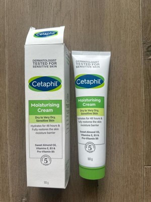 Care for your dry to very dry skin with CETAPHIL Moisturizing Cream, a non-greasy, moisture rich cream for the whole body. Enriched with sweet almond oil and vitamin E, it immediately comforts and instantly hydrates dry, sensitive skin. Formulated with a new blend of key ingredients: hydrating glycerin, panthenol (vitamin B5) to hydrate, soothe and preserve the skin barrier, and niacinamide (vitamin B3) to help smooth skin's texture and retain skin's moisture barrier. For long lasting hydration, this extra strength moisturizer binds water to the skin to deeply replenish the skin's moisture and prevent moisture loss, hydrating and soothing skin's dryness for 48 hours and completely restoring the skin's moisture barrier in one week. Ideal for very dry areas of skin on the hands, feet, elbows and knees, leaving your skin feeling soft, smooth and nourished. This fragrance free, paraben free, and sulfate free formula won't clog pores and is clinically tested for even the most gentle skin. Effectively defends against 5 signs of skin sensitivity.