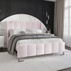 This glamour look with crystal diamond strips bed give your bedroom a mysterious yet high-end feel. Luxurious design perfectly matched with lavish finishes. This bed is made with solid wood and it has sturdy metal feet to match. The wooden frame is upholstered in 100% polyester velvet fabric. The headboard are all-over upholstery is filled with foam, allows you to easily lean against the headboard. This bed arrives with 4 slats, so box spring or foundation is required. It is available in Twin, Full, Queen and King size available in six various colors: White, Black, Green, Navy blue, Light pink and Light grey. This bed are need to assembly, it is ship in one box and all hardware needed are included.