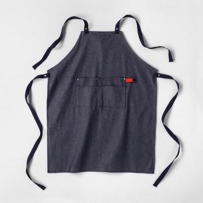 Keep your clothing tidy while you prep your favorite meals wearing this Blue Chambray Apron from Project 62™. Soft and durable, this chambray apron makes for an elegant essential to complete your kitchen collection. This simple blue apron features handy double pockets at the front to keep what you need close by. Designed for a perfect fit, it's equipped with adjustable ties at the waist and neck for comfortable, secure wear.