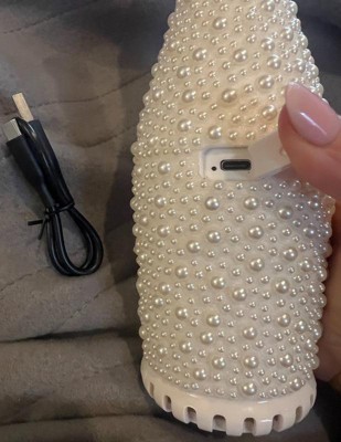 This bluetooth speaker from Target shaped like a champagne bottle with pearl accents is such a fun and elegant surprise. The design is absolutely beautiful and looks lovely sitting out on a shelf. I placed mine in the kitchen to play music while cooking dinner and to fill the space with holiday songs while baking cookies. It adds charm to any room and makes a great conversation piece. The sound is loud and clear which is impressive for the price point. I admit I usually prefer higher end brands because of their sound quality, but this one truly holds its own. It is a great value and a nice alternative if the more expensive brand is not within budget. What really sets this speaker apart is its unique aesthetic and thoughtful design. The sound comes from the bottom of the bottle but it has clever slots that prevent any muffling and allow the music to project beautifully. It sits slightly lifted from the base to ensure excellent sound quality. No other speakers even the expensive ones offer beauty and function like this one. Highly recommend for anyone who wants style and sound in one.