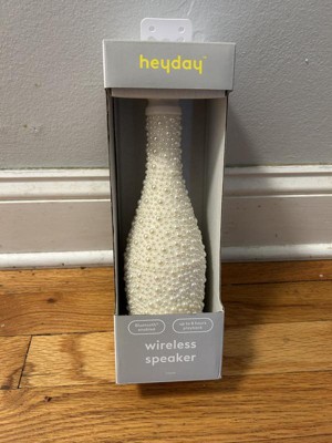 This is a cute speaker by Heyday! It looks like a decorative champagne bottle of sorts with pearls. It pairs great with to play music, I haven't tried it with the phone as far as talking yet. But overall it's cute, not too big, good sound quality. No complaints so far 😊