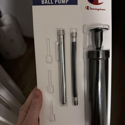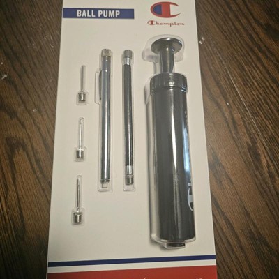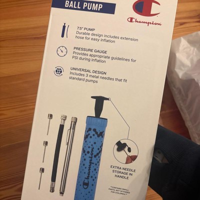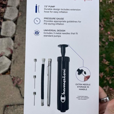[This review was collected as part of a promotion.] This Ball Pump from Champion is really slick and easy to use. It comes with the pump, three needles, and two different attachments including a tire pressure gage. It does have a little storage area on the pump for the needles but I wish it was bigger. It really only fits one of them and then I just left the other ones on the attachments so I wouldnt hopefully lose them.