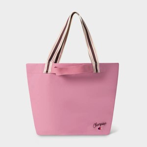 Great deal on this Champion tote; sturdy straps, thick material, holds shape, spacious and the tote in pink is vibrant. I spilled coffee on the bag and it was an easy clean, I’m glad since it’s my new gym bag. This bag needed to fit all my gym equipment and it did! Sorta bulky, but it’s cute.