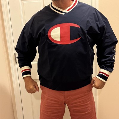 [This review was collected as part of a promotion.] (6'1" 200 Lbs - Size XL) I recently purchased this Gridiron Vneck Windbreaker by Champion and I'm in love with it! Very retro feeling - takes me back to the early 90s with the style and feel. There is a nice/soft under layer beneath the Windbreaker material. The colors on the neck, sleeves, chest, and arms are eye catching and add a nice touch to the jacket. Only thing it's missing is a pocket. Would recommend! I received an incentive to write this review.