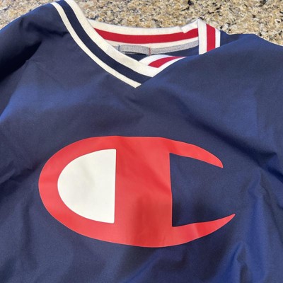 Gear up for brisk days and cool nights in varsity-inspired style. Enter: The men’s Champion Gridiron V-Neck Pullover. Made from durable Aqua Shield woven polyester, this lightweight pullover is cut into a standard fit for easy movement. With a big, bold “C” front graphic and “Champion” script on the sleeve, this pullover is all about game-day energy, while dropped shoulders and striped ribbed trims nod to old-school gridiron days. An iconic canvas patch at the back neckline lends a signature finish to make this V-neck pullover the perfect top layer when the temp starts to dip.