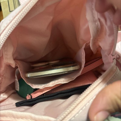 This has more room than I expected. It holds everything I need it to hold. The zip compartment is roomy and has two separate area for wallet, for hand sanitizer, for touch up makeup. It will hold your phone in the zip area or the outside pocket. My one concern is the strap is very wide. Makes it stable and does not cause discomfort. Like digging in your shoulder is not a concern. It is a little bit of a challenge to get it sit comfortably.