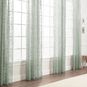 Chanasya 2pk Embroidered Swirl Vine Sheer Window Curtain Panels - Set of 2 - 1 of 4