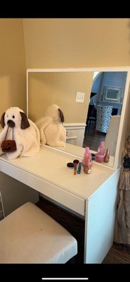 [This review was collected as part of a promotion.] The Virgina Vanity with Mirror is perfect! I love how easy it is to put together. It is the perfect size. Very sturdy and very well made. It has a simple, sleek, and modern look to it. It will go with all kinds of different decors, fits perfectly. It has one large drawer with separators to make it easy to store your stuff in there and have it all organized. The mirror is the best part. It is big enough to make sure you get a good look at yourself while you are getting ready. I would add some lights on the mirror for extra light and it makes it absolutely perfect! The vanity is very sturdy and will last a long time!