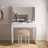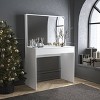 Update the look of your bedroom with the Virginia Makeup Vanity Table in White from Polifurniture. This vanity will bring a clean modern style to any bedroom. The large drawer on metal glides provides concealed storage, and has a divider to help keep all your personal belongings organized. The extra-large mirror provides the perfect place to get ready for your day or a fun night out. The large table top provides plenty of space to get ready, and can also double as a desk. Constructed from high quality engineered wood with a durable and resistant melamine finish this vanity was made to last. The all-white finish and clean lines will complement any current home décor. With its versatility, modern design and extra-large mirror, the Virginia Makeup Vanity Table is a great addition to your space.