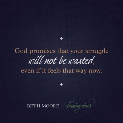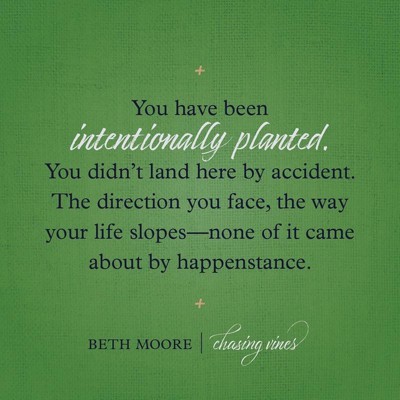 Throughout the book, Chasing Vines, Beth Moore points the reader to the idea that we were chosen to flourish. Our lives were meant to lead us closer to God and the delight we find when we allow Him to prune, prepare, and position ourselves to become the best we can be. When pain and striving become our battle cry, it is hard to see through the mess and believe God created us for fruitfulness. But, "Jesus is our staying power in all our going."