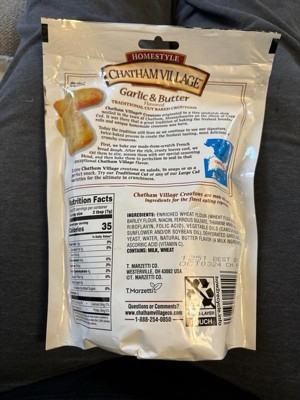 [This review was collected as part of a promotion.] Chatham Village Garlic & Butter Croutons offer a simple yet flavorful addition to salads and soups. The combination of garlic and butter adds a tasty richness to each crunchy bite. The croutons maintain a good balance, not overpowering the dish but complementing it nicely. While there might be more adventurous crouton flavors available, these classic garlic and butter croutons are a reliable choice for enhancing your favorite dishes with a subtle savory twist.