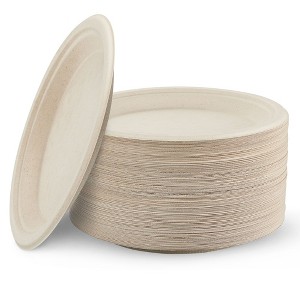 Cheer Collection 9" Round Compostable Paper Plates - Natural Brown Pack of 100