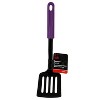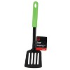 This fun turner from Chef Craft will brighten up any kitchen. Its nylon construction is heat-resistant to 450 degrees Fahrenheit.It's perfect to use with pans that have a non-stick coating that you don't want to damage. The thin edge is great for flipping everything, including eggs!You will reach for the Chef Craft Basic Nylon Turner with its comfortable plastic handle day after day. The black working end will not stain no matter what foods you cook.Dishwasher safe for easy cleaning. Measures approximately 11.5-inches long overall, turner end measures approximately 3.75-inches long by 3-inches wide.