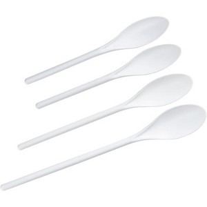 Constructed with BPA-free plastic for durability, quality, and strength. Pack of four spoons includes (2) 9.5" spoons, (1) 11.5" spoon, and (1) 13.5" spoon. They are top-rack dishwasher safe for easy, quick, and convenient cleanup
