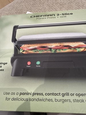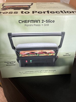 Chefman 3-in-1 Panini Press & Grill, 2-Slice Non-Stick, Opens Flat - Stainless Steel