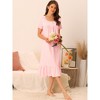 Nightgown with square neck, lace decor front, short sleeves, ruffled hem, and cuffs, stylish and sweet for comfortable nightwear, suitable for everyday wear in spring, summer, or fall.