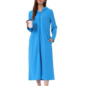 cheibear Women's Zip Up Sweatshirt Robe Hooded Long House Coat Bathrobe Fall Winter - 1 of 4
