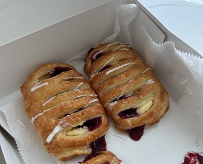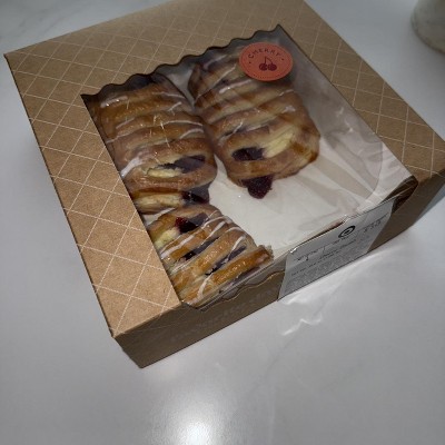 These golden pastry filled with cherry jam and cheese topped with a sweet drizzle are amazing! So fresh tasting and not dry at all. Tastes like they were made that morning. I could eat these for breakfast or a sweet treat after dinner. First time trying them and I will definitely be purchasing more. I am already a fan of the butter croissants favorite day bakery makes. I will say these used to be $4.99 for 4 but now are at $5.49 Still a better price than going to a cafe.