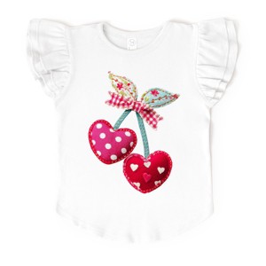 Cherry Hearts Patchwork Print - Flutter Sleeve Graphic T-Shirt - 1 of 4