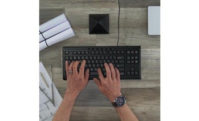 [This review was collected as part of a promotion.] The Cherry Streamline keyboard works perfectly with my HP computer. Setup was seamless—my computer recognized it immediately. The keys are quiet, and the Caps Lock key lights up when activated, which is a nice touch. It fits well on my desk, and since I don’t often use a number keypad, its absence frees up extra space. The keys are full-sized, making typing comfortable. I highly recommend this keyboard.
