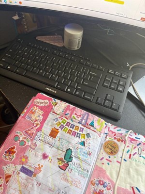 [This review was collected as part of a promotion.] Not my photo! Used this one because it showed the size better. It’s a decent keyboard. The size was smaller to make it more compact, a little easier if you’re hybrid work in office and at home. Decent durability for price.