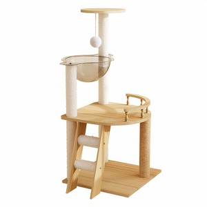 Blend style and function with this 48.8-inch Modern Cat Tower, featuring a sleek wooden design that complements contemporary home decor. Built with durable, premium materials and sisal-wrapped scratching posts, it offers a stable playground for cats of all sizes. The elevated perch serves as a lookout spot, while the included acrylic hammock creates a cozy resting nook—making it a practical and elegant addition to any cat-loving household.
