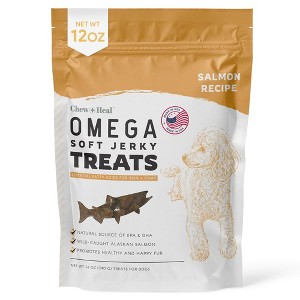 - Whether you have a single furry companion or multiple dogs to care for, Chew + Heal Wild-Caught Alaskan Salmon Omega Soft Jerky Treats offer a delectable and beneficial snack option that supports their skin, coat, and overall health, ensuring they exude vitality and well-being in every wag of their tail.