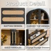 ChicFurnit Decorative Storage Cabinet with Arched Bookcase combines functionality and style for your home or office. Featuring a mix of shelves and drawers, it offers storage with both open and closed sections. The sleek arched top and woven drawer fronts enhance any room’s decor while providing ample space for books, decor, and essentials. Glass doors let you showcase favorite items while smooth sliding drawers and adjustable shelves make it versatile and easy to organize.