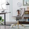 Chicfurnit brings elegance and comfort together with this modern velvet office chair designed for stylish workspaces. The deep cushioned seat and tufted back provide soft ergonomic support for daily tasks. A golden plated metal base enhances both durability and beauty while the triple layered cushion structure ensures lasting comfort. Perfect for home offices or creative studios this chair adds refined sophistication to your routine.