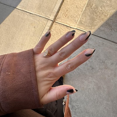 I usually don my natural nails, but I like to wear press ons for fun once in awhile or for special occasions. Loved the cool and edgy dark swirl pattern on these and decided to try them out for fun. They are a bit longer than what I am use to, but they fit really well and were very easy to apply. I work at a coffee shop so unfortunately my hands get wet a lot, but here is hoping these last a solid week or two because they look quite nice!