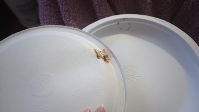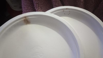 Ope! Sounds like a party foul on our part. Here's the truth—Chinet Classic® products are made from pre-consumer recycled material and pressed into form. We love using recycled materials, but it means we are constantly re-evaluating and optimizing the manufacturing process. Recently, all Chinet Classic® molded fiber tableware transitioned to a new Oil & Grease Resistant (OGR) barrier technology. Because of that, you didn't get our best product, and we apologize. We are working to correct the issue. In the meantime, feel free to contact a representative by email at MyLife@mychinet.com or call 1-800-847-4129. Thank you!