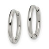 These polished stainless steel hoop earrings measure 13 mm in length and width with a thickness of 1.6 mm. Featuring a secure post, notch & lock closure, they come in a hinged/huggie style and are sold as a pair