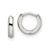 These polished stainless steel hoop earrings measure approximately 8.44 mm in length and 9.29 mm in width, with a thickness of 1.97 mm. Designed in a hinged/huggie style, they provide a secure and comfortable fit with a post, notch & lock closure. Sold as a pair, these versatile earrings offer a sleek, timeless look perfect for everyday wear or special occasions.