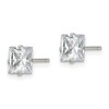 These polished stainless steel stud earrings feature two 6mm square-cut cubic zirconia stones, set securely in classic 4-prong settings. With a sleek 6.63mm width and synthetic brilliance, they offer a timeless sparkle perfect for everyday wear or special occasions. Designed with and push back closures for a secure, comfortable fit. Sold as a pair with all stones included.
