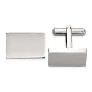 Add a touch of timeless elegance to your formalwear with these polished stainless steel cuff links. Measuring 19mm wide by 12.5mm long, they offer a sleek and refined look in a classic white metal tone. Crafted for durability and sophistication, these cuff links are the perfect finishing touch for business attire or special occasions. Sold as a pair.