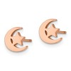 These polished stainless steel button earrings feature a warm rose-tone IP-plated finish, measuring approximately 7.67 mm in length and 6.61 mm in width. Sold as a pair with a secure and push-back closure, they provide a stylish and comfortable choice for everyday wear