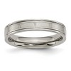 Celebrate timeless simplicity with this sleek 4 mm titanium wedding band. Featuring a polished and brushed finish for a modern, dual-texture look, this lightweight grey titanium ring offers durability and understated elegance. Designed with a flat edge and standard fit, it provides comfort for daily wear while maintaining a clean, contemporary silhouette. Perfect for those who value both strength and style.