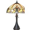 Add classic elegance to your home with the AMOR Tiffany-style Table Lamp, a Victorian-inspired lighting piece handcrafted with warmth and artistry. Its round 16-inch shade is adorned with 324 cuts of stained Tiffany-style glass and 18 rich jewel-tone glass beads, meticulously arranged for vintage charm and vibrant beauty.