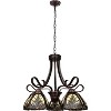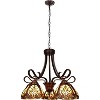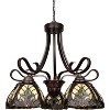 Liaison is a beautiful, large-chandelier in a traditional Victorian style, featuring detailed stained glass shades. This fixture would be perfect in a living room, dining room, and foyer. The shades are hand-crafted, using the same methods developed by Louis Comfort Tiffany in the early 1900s. This process entails using 152 hand-cut stained art glass pieces and 12 glass beads per shade, each wrapped in fine copper foil and soldered together at extremely high temperatures to form each unique piece. The exact size to the nearest inch may vary, and the exact color of each glass piece may vary due to each piece being hand-crafted. The first image is with the light shining through, and the second image is with no light. Dry-listed and recommended for an indoor setting.
