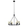 This is a sleek wheel design 6 light, industrial-style ceiling pendant that would be a perfect fit over a bar area, over a dining table, and in the hallway! The metal frame is in an matt black finish. The fixture takes six 60W E12 bulbs and is compatible with incandescent, fluorescent, and LED bulbs. This fixture is dry-listed and UL-listed, and not recommended for damp/wet locations. Recommended for residential and commercial use.