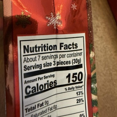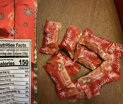 These are tasty but the quantities indicated on the bag are incorrect. Each bag indicates a serving size of 3 pieces with about 7 servings per bag. Expecting each bag to contain 21 pieces, I bought several bags to fill some advent calendars. I was quite disappointed to discover the first bag contained only 9 pieces and the second had only 10 pieces. This is very misleading labeling and was quite disappointing.