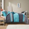Fiercely fashionable, the Christa Comforter Set delivers an invigorating update to your bedroom. The comforter features polka dots, a damask motif, and leopard print in a bold color palette of black, white, and teal. The solid teal reverse provides a pleasant relief to the chic design, while matching shams (1 for Twin/Twin XL) complete this bold look. A decorative pillow with embroidered details and fabric manipulation add the finishing flare to this fun comforter set. Comforter and shams (1 for Twin/Twin XL) are machine washable. This bedding set is OEKO-TEX certified with an antimicrobial treatment, meaning it does not contain any harmful substances or chemicals and reduces the risk of bacterial growth to ensure quality comfort and wellness.