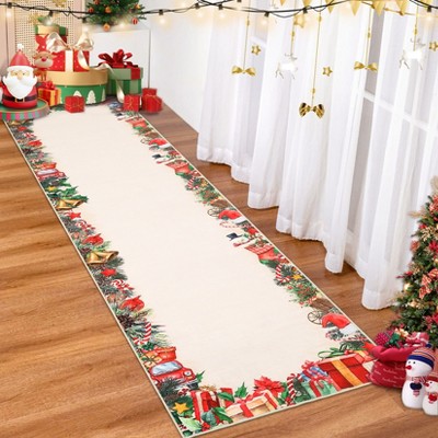 - 【Durable, Washable & No Shedding】Crafted with tightly machine-woven fibers and sturdy edges, this Xmas decorative rug resists shedding and fading. Simply toss it in the wash or vacuum as needed, keeping your Christmas accent rug vibrant and fresh year after year