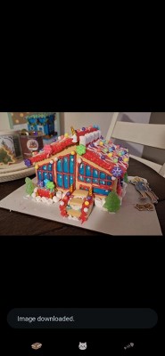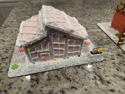 False advertising!! I got this for my gingerbread house competition and it was literally 4in tall. Very misleading when the house on the box is way bigger than the actual house. Also the way the roof is made leaves a 1in gap in the roof which looks so stupid. I had to fill it with marshmallows! Had to make my own icing for it and use a hot glue gun to make it work. I made the best out of it but I got last place in my competition.