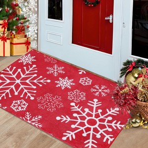Christmas Door Mat Snowflake Welcome Rug, Washable Non-Slip Bathroom Mat, Festive Indoor Front Door Carpet for Bedroom, Entryway, or Kitchen