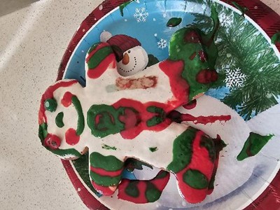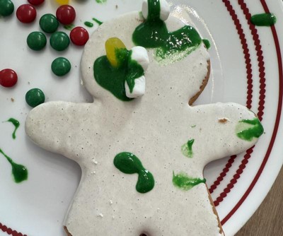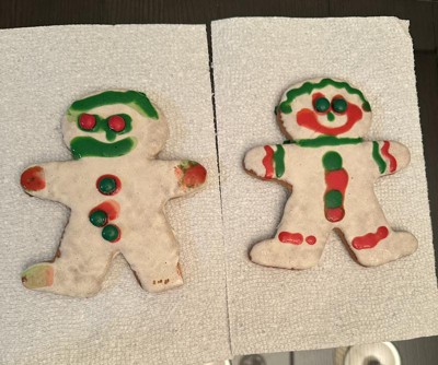 The icing was very runny and the gingerbread men looked like they’d come from a crime scene. Cookies were hard as a rock also