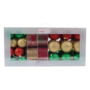 Celebrate timeless holiday beauty with this 67-piece traditional trim kit. Combining shatterproof ornaments with elegant wired ribbons, this set is designed for both beauty and durability. Perfect for families who love the rich reds, golds, and greens of a classic Christmas look.