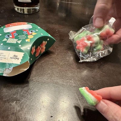 [This review was collected as part of a promotion.] This holiday gummy treat ornament is a cute idea to add a little something different to your tree or stocking. They are supposed to be sour strawberry and apple flavored, but the flavors are very mild to me. Just a little bit sour that immediately fades into sweet. The texture of these is also rather chewy and it takes a little bit of effort to bite through it. For the price point it is cute, but the candy themselves do not stand out. I received an incentive to write this review.